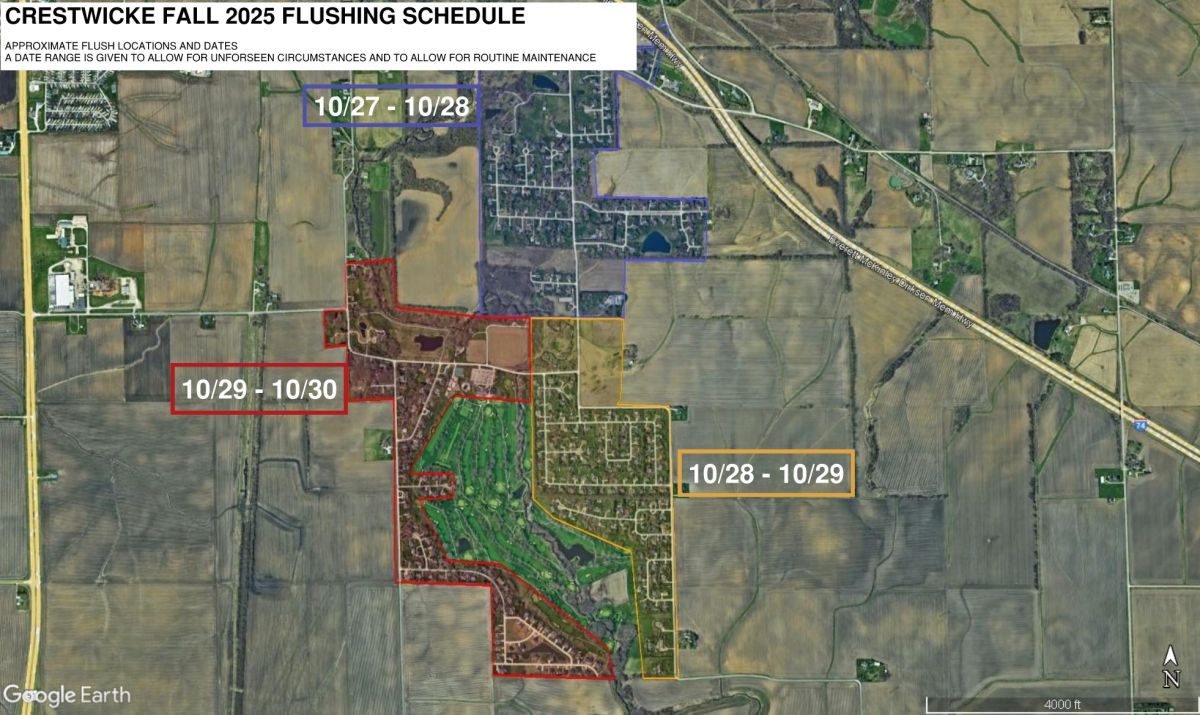 Hydrant flushing occurs twice a year, in the spring and the fall. Approximate dates for Fall 2025 flushing are provided below. Also below are some frequently asked questions.